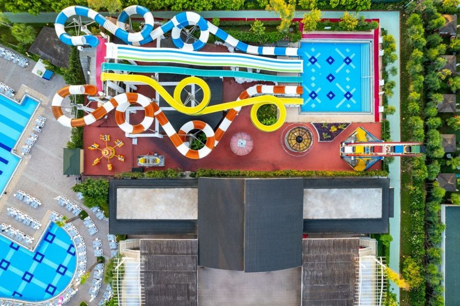 Основен ресторант, 8 а - ла - карт ресторанта (италиански, френски, гръцки, мексикански, далекоизточен, османски, рибен, ресторант месо и вино - с предварителна резервация, при минимум 7 нощувки - безплатно), 5 бара, 3 открити (оновен, релакс и с пързалки) и 1 закрит басейн, дискотека, аквапарк, лунапарк, СПА център, магазини, конферентна зала, Wi-Fi (безплатен).