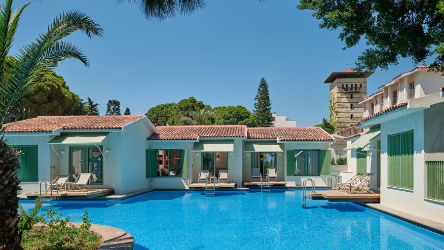Разполага с общо 529 стаи, разположени в основна сграда и 24 блока, oт които: 220 Standard Main Building (24 м2, двойно/две единични легла и диван), 89 Standard Bungalow (27 м2, двойно легло и 2 дивана), 52 Superior Standard LV (40 м2, 1 двойно, 1 единично легло, 1 диван, изглед суша), 24 Superior Standard SV (40 м2, 1 двойно, 1 единично легло, 1 диван, изглед море), 13 Family Suite Garden (45 м2, отделни спалня и дневна стая, 2 дивана), 34 Family Suite Main Building (50 м2, отделни спалня и дневна стая, 2 бани, 2 дивана), 2 Terrace Suite (60 м2, отделни спалня и дневна стая, 2 бани, 2 дивана, голяма тераса), 26 Dublex Family Suite (55 м2, отделни спалня и дневна стая, 2 бани, 3 дивана), 17 Lake Suite Direct Pool Access + 18 age (50 м2, отделни спалня и дневна стая с диван, тераса с директен достъп до басейн, adults only), 28 Lagoon Suite (50 м2, отделни спалня и дневна стая, 2 бани, 2 дивана), 11 Lagoon Suite Direct Pool Access (50 м2, отделни спалня и дневна стая, 2 бани, 2 дивана, тераса с директен достъп до басейн), 4 Lagoon Dublex Suite Direct Pool Access (60 м2, отделни спалня и дневна стая, 2 бани, 3 дивана, тераса с директен достъп до басейн), 9 Lagoon Premium Suite Direct Pool Access (80 м2, 2 отделни спални и дневна стая, 2 бани, 1 диван, тераса с директен достъп до басейн).