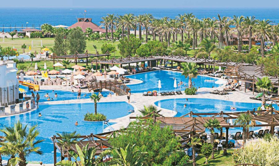 Основен ресторант, 3 а-ла-карт ресторанта (рибен, италиански, турски), 6 бара, 5 открити басейна, 1 закрит басейн, 1 басейн с пързалки за възрастни, 1 с пързалки за деца, Wi-Fi, Спа център.