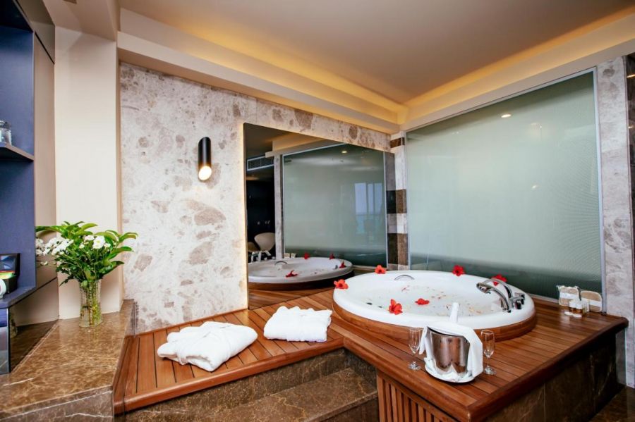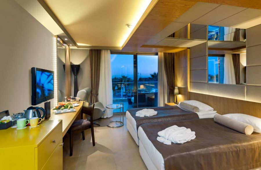 Основен ресторант, 1 а-ла-карт ресторант (интернационален, с предварителна резервация съгласно концепцията на хотела ), 5 бара, сладкарница, открит и закрит басейн, СПА център, дартс, фитнес, тенис корт, тенис на маса, боча, водна гимнастика, аеробика, баскетбол, плажен волейбол, фризьор, пералня, магазини, лекар, 1 конферентна зала.