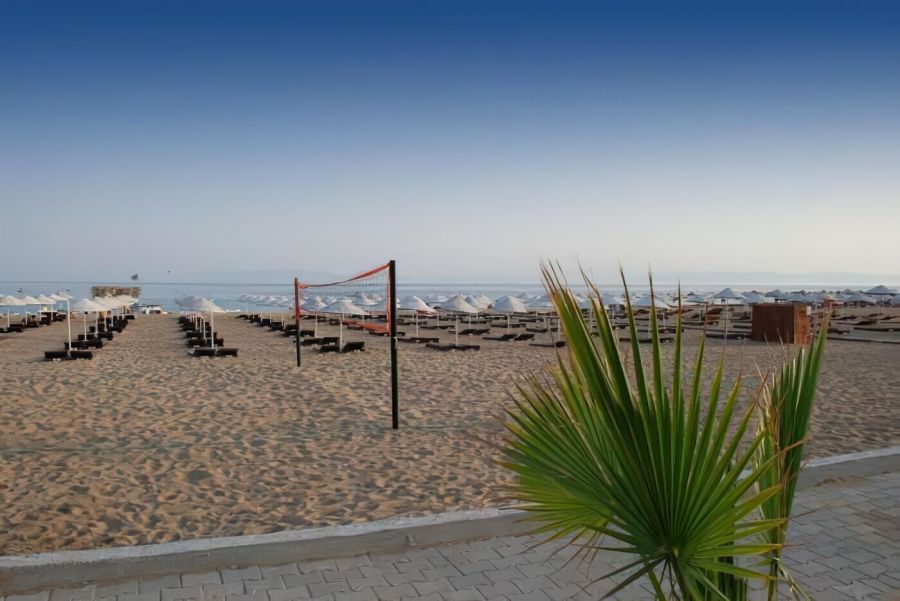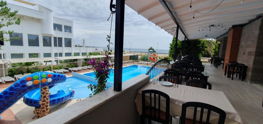 ПЛАЖ: Собствен, пясъчен – чадъри и шезлонги на плажа и при басейна – безплатно.