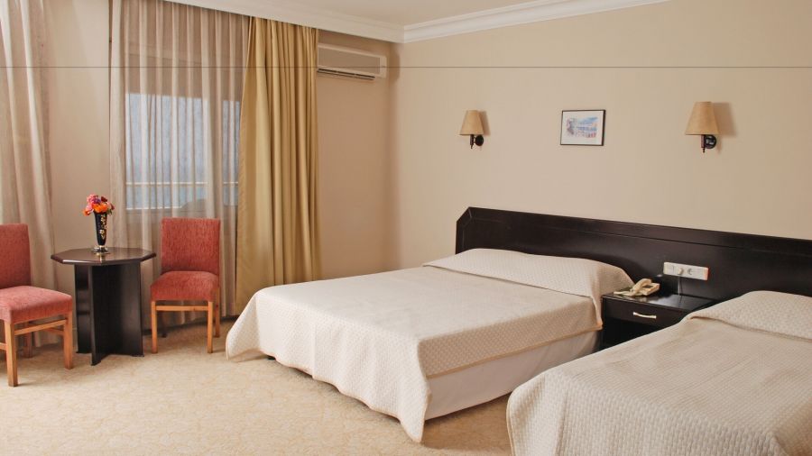 Хотелът разполага общо със 180 стандартни стаи. Всички стаи са оборудвани с климатик, сателитна телевизия, телефон, баня с душ/вана, сешоар, сейф (платен), балкон. Почистване на стаите- всеки ден.