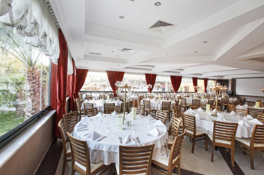 Основен ресторант, 3 бара, 1 открит, 1 закрит и 1 детски басейни, дискотека, водна пързалка, амфитеатър, магазини, SPA център, 2 конферентни зали, паркинг. За децата: Детски басейн, водна пързалка, детска площадка, Мини-клуб (4-12г). Безплатни услуги: Фитнес, плажен волейбол, баскетбол, анимационна програма, интернет (в лоби). Платени услуги: СПА център, сауна, турска баня, джакузи, масаж, пилинг, фризьор, магазини, химическо чистене, обмяна на валута, билярд, игрални автомати, моторни водни спортове.