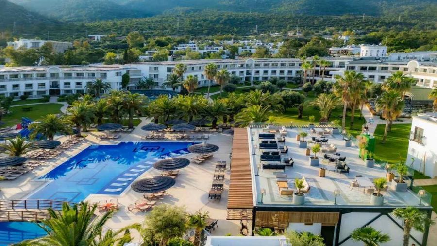 Хотелът се намира на 30 км от летище Милас, на 9 км от центъра на Бодрум, в района на Торба, на брега на морето. Последно реновиран през 2022/3 г. С обща площ от 70 000 m².