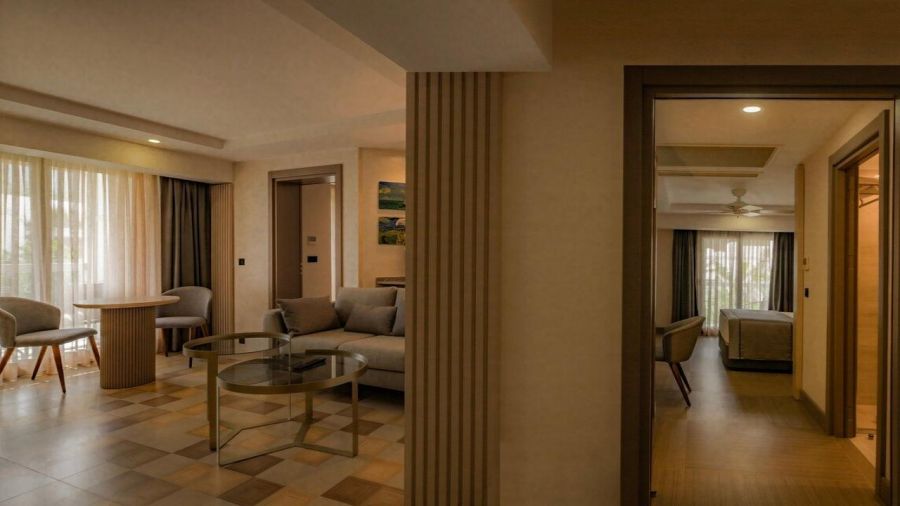 Хотелът се състои от 339 стаи от които: Standard Room Land View (35 m²), Standard Room Sea View (32 m²), Standard Sea View Corner room (35 m²), Deluxe Garden Room (30 m²), Superior Garden Room (35 m²), Junior Suite (45 m²), Senior Suite (55 m²) и стаи за инвалиди. Всички стаи са оборудвани с централен климатик, телевизор, телефон, баня с душ/вана, сешоар, мини бар, сейф, балкон или тераса, Wi-Fi. Почистване на стаите - всеки ден, смяна на спалното бельо - 3 пъти в седмицата.