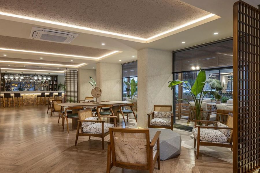 Разположен на 110 км от летище Анталия, на 12 км от центъра на Алания и на 800 м от Конаклъ, на 150 м от брега на морето. Реновиран през 2024 г.