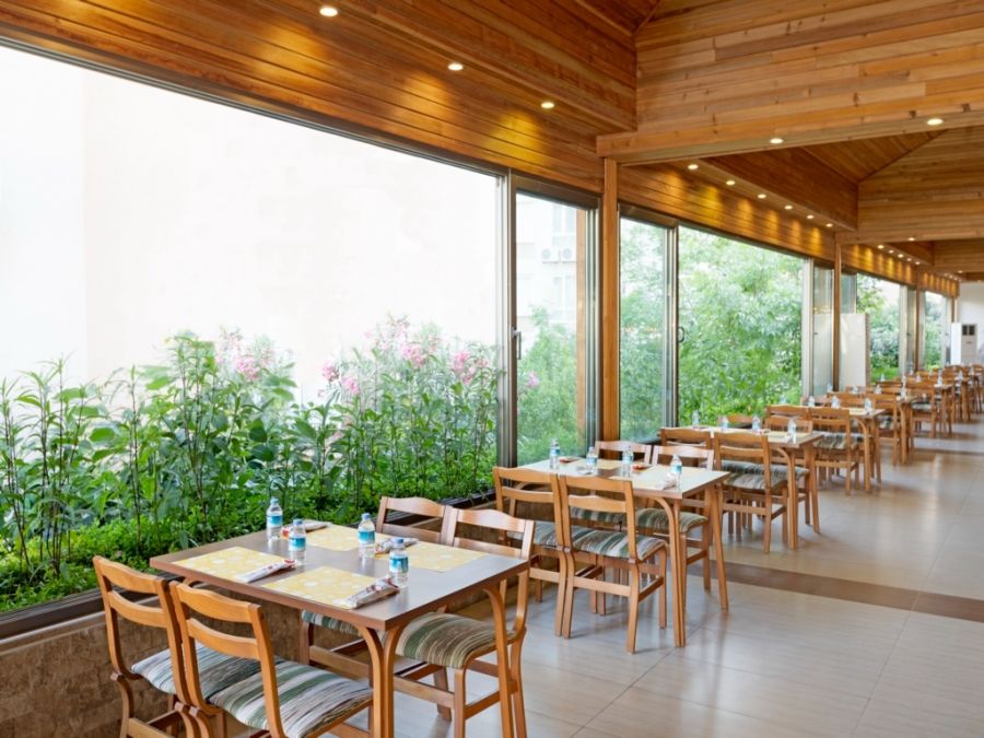 Основен ресторант, 3 бара, 1 открит басейн, 3 водни пързалки, СПА център, Wi–Fi.