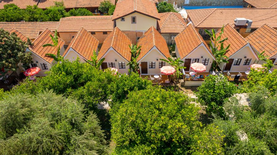 Разполага с 48 бунгала, всяко от които е снабдено с:климатик ( регулира се индивидуално), баня и тоалетна, сешоар, телефон (срещу заплащане), телевизор, мини бар (ежедневно се зарежда с вода), балкон или тераса.