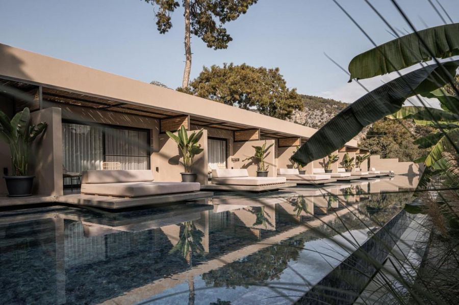 Собствен, чакълест плаж (препоръчително е носенето на аква обувки). Чадъри, шезлонги и плажни кърпи на плажа и при басейна – безплатно.