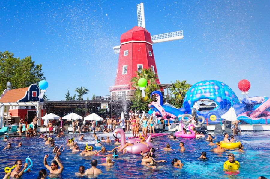 3 ресторанта, 7 бара, кафене, сладкарница, открит и закрит басейн, 2 водни пързалки, СПА център, конферентна зала