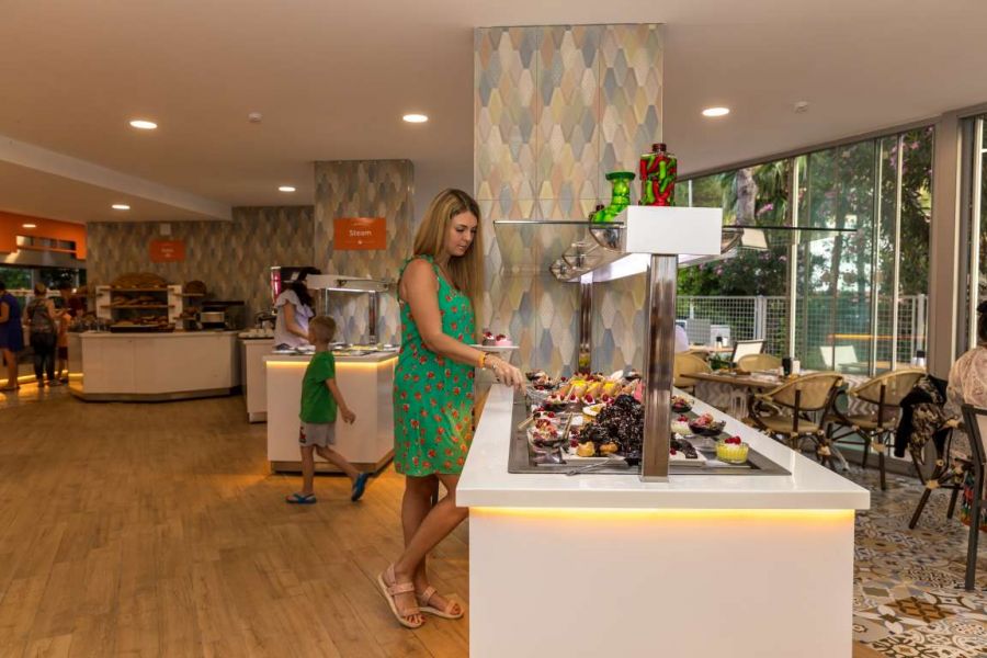 Основен ресторант в Блок А,а- ла- карт (срещу заплащане), 2 бара, 3 басейна, 5 водни пързалки.