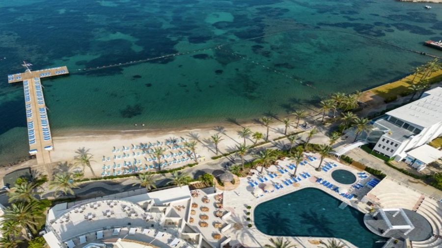 Хотелът е разположен на 50 км от летище Милас, на 20 км от центъра на Бодрум, в района Тургутрейс, на 1 км от центъра на Тургутрейс, на брега на морето. Разполага с площ от 30.000 m², последно реновиран изцяло през 2022/3 година.