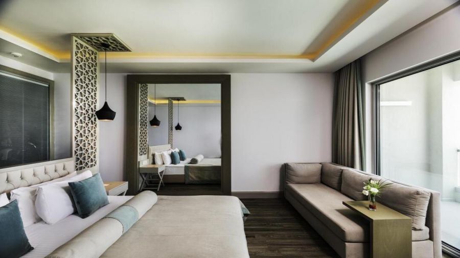 Хотелът се състои от 341 стаи: 217 клубни стаи (от които 81 с гледка градина и 136 гледка море), 58 клубни семейни стаи с гледка градина, 28 делукс семейни стаи и 38 делукс стаи. Всички стаи са оборудвани с: баня с душ, сешоар, климатик, телевизор, телефон, сет за кафе и чай (безплатен), минибар (безплатен, зарежда се веднъж при пристигане с безалкохолни напитки и вода, през останалите дни - веднъж на ден вода и газирана вода), сейф (платено), смяна на спалното бельо – 3 пъти седмично.