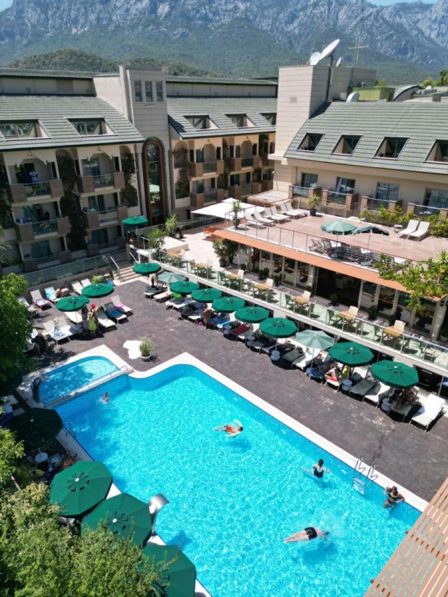 Намира се на 60 км. от летище Анталия, на 40 км. от центъра на Анталия, в района на Кемер, на 50 м. от брега на морето, през път. Открит 2007 г., реновиран 2018 г. (общи части), с обща площ 9 000 кв.м.