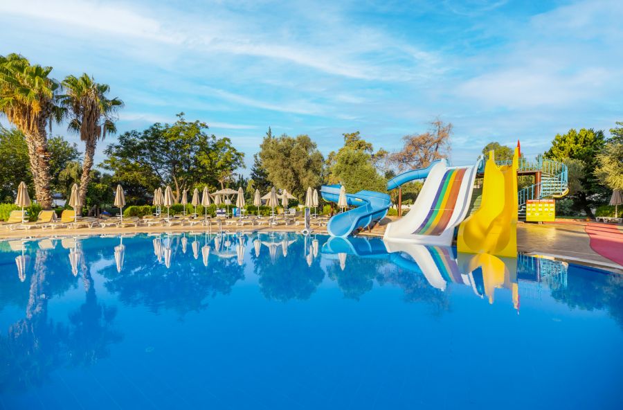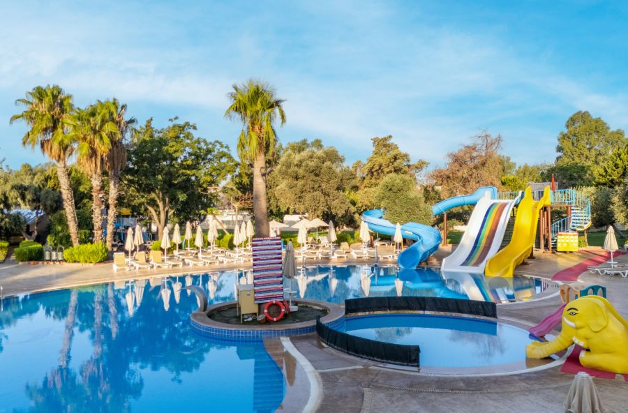 За децата: Детско меню, детски басейн, 2 водни пързалки, детска площадка, мини клуб (4-10 г).