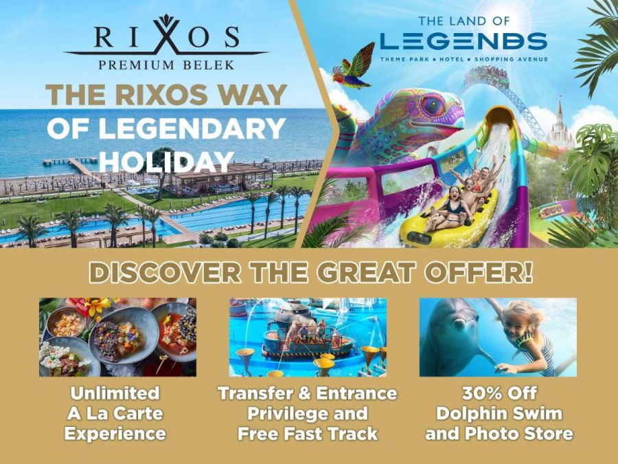 За децата: Детски открит и закрит басейн, детска площадка, мини клуб (4-7г.), джуниър клуб (8-11г.), тийн клуб (12-16г.), детска рецепция, детски ресторант, детски чехли и халат, детска козметика за баня, водни пързалки, мини диско, музикални игри. Посещение до парка The Land of Legnds, където има аквапарк и лунапарк, до него се стига с шатъл.