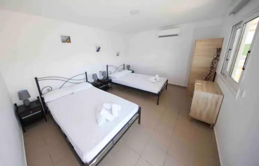 Черен вулканичен плаж на 650 метра от хотела. Чадъри и шезлонги срещу заплащане.