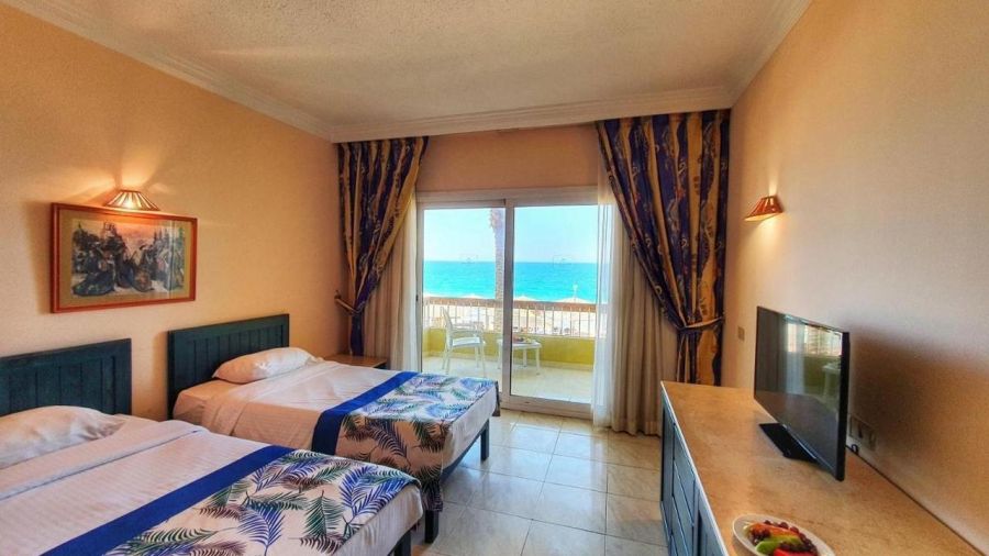 Palm Beach Resort 4* е обзаведен в модерен стил, а обстановката и атмосферата са традиционни за Египет. Хотелът разполага с прекрасни гледки към Червено море, с 2 басейна, собствен пясъчен плаж и клуб по гмуркане. Гостите на хотела имат на разположение още: ресторант с международна кухня, бар с напитки и леки закуски, релаксиращи масажи, сауна и фитнес, екип от аниматори, организиращи различни занимания и игри през целия ден. Центърът по гмуркане - The Caves, предлага различен тип водни спортове, като гмуркане, шнорхелинг и уиндсърф.