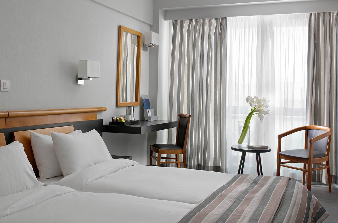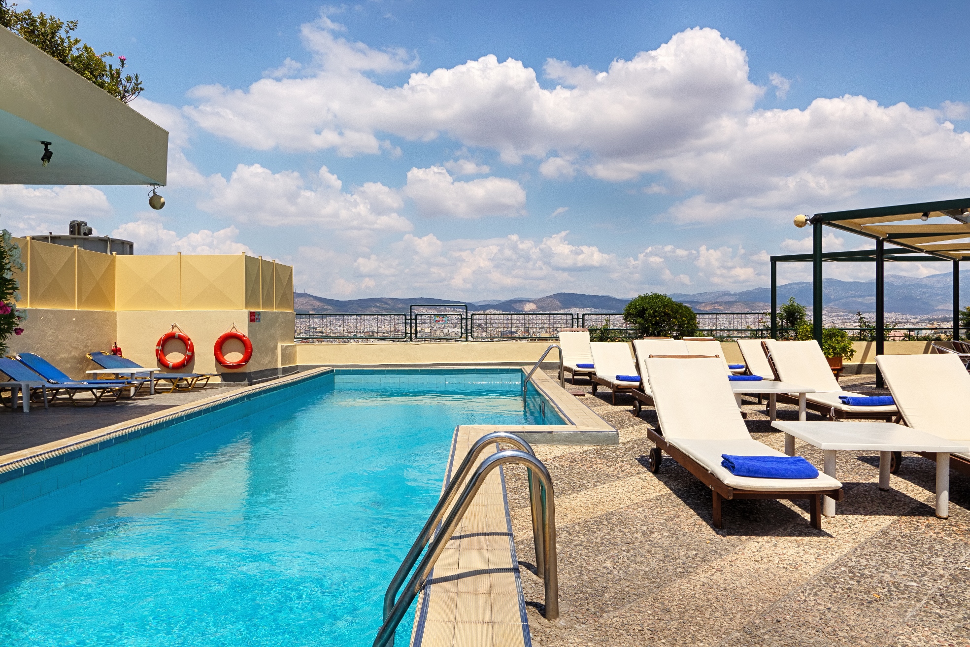 В хотела: басейн на покрива, чисто нов напълно оборудван фитнес център, 2 ресторанта и 3 бара, включително и открит бар на покрива. На разположение на гостите в хотела има изцяло реновирани и климатизирани стаи за настаняване с безплатен неограничен Wi-Fi достъп и денонощна рецепция. Ресторантите са специализирани в гръцка кухня, средиземноморски ястия и прясна риба.