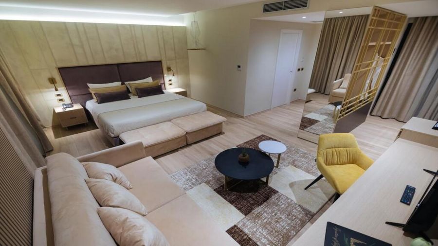 Хотелът предлага разнообразие от луксозни стаи и суити с изглед към морето или градината. Всички помещения са оборудвани с климатик, безплатен Wi-Fi, телевизор с плосък екран, минибар, сейф и балкон. Баните са модерни, с душ кабина или вана, сешоар и безплатни тоалетни принадлежности.