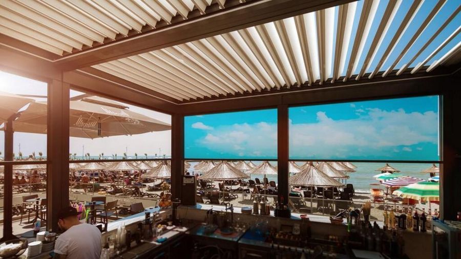 • Частен пясъчен плаж с шезлонги и чадъри