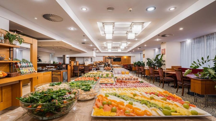 • Хотелът предлага ресторант Symphony, където се сервират чешка и международна кухня – закуска, обяд и вечеря;