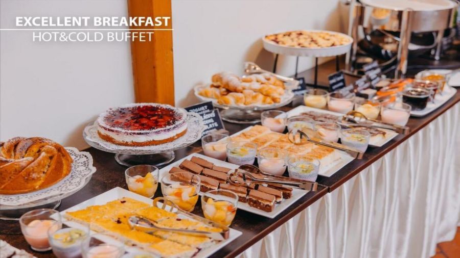Ресторантът на хотела сервира изобилна закуска на шведска маса всяка сутрин, включваща както топли и студени ястия, така и традиционни чешки печива и напитки.