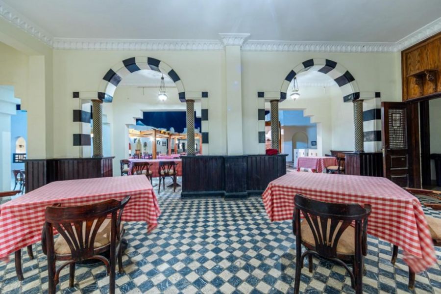Разположение: Хотелът е построен в традиционен мавритански стил в красива градина, разположен на брега на морето, директно на частния плаж с коралов риф Far Garden Reef, на б км от център на Наама Бей, на 9 км от летището.