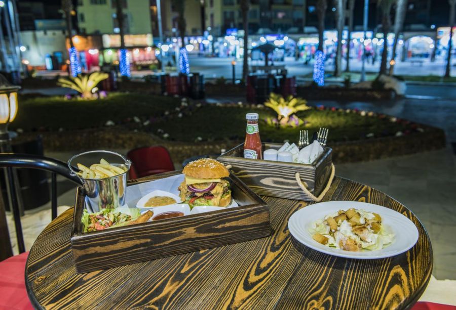 Основен ресторант, 6 а-ла карт ресоранта - италиански, азиатски, гръцки, египетски ресторант, ресторант за бургери, морски (платен), 4 бара, диско бар (срещу заплащане) наргиле бар (срещу заплащане), 4 открити басейна (1 от които отопляеми през зимния сезон), конферентна зала, СПА център, аквапарк с 6 водни пързалки, Wi-Fi.