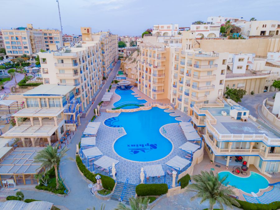 Намира се на брега на морето, 3 км. от центъра на Хургада и на 8 км. от летище Хургада.