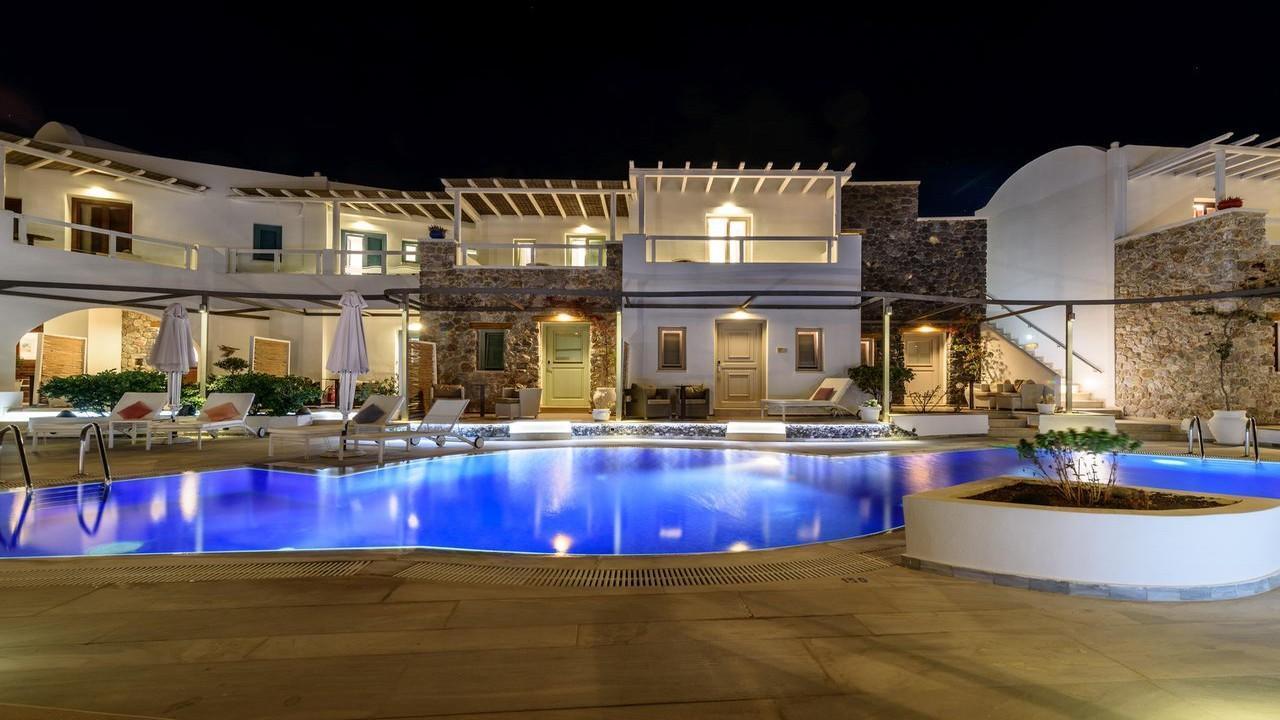 Хотелският комплекс се намира на 8 километра от столицата на остров Санторини – Фира, а летището е на 4 километра от хотела. Комплексът е изграден с цел да осигури максимална почивка и комфорт на своите гости и разполага с много удобства и модерни съоръжения. Комплексът е с концепция: