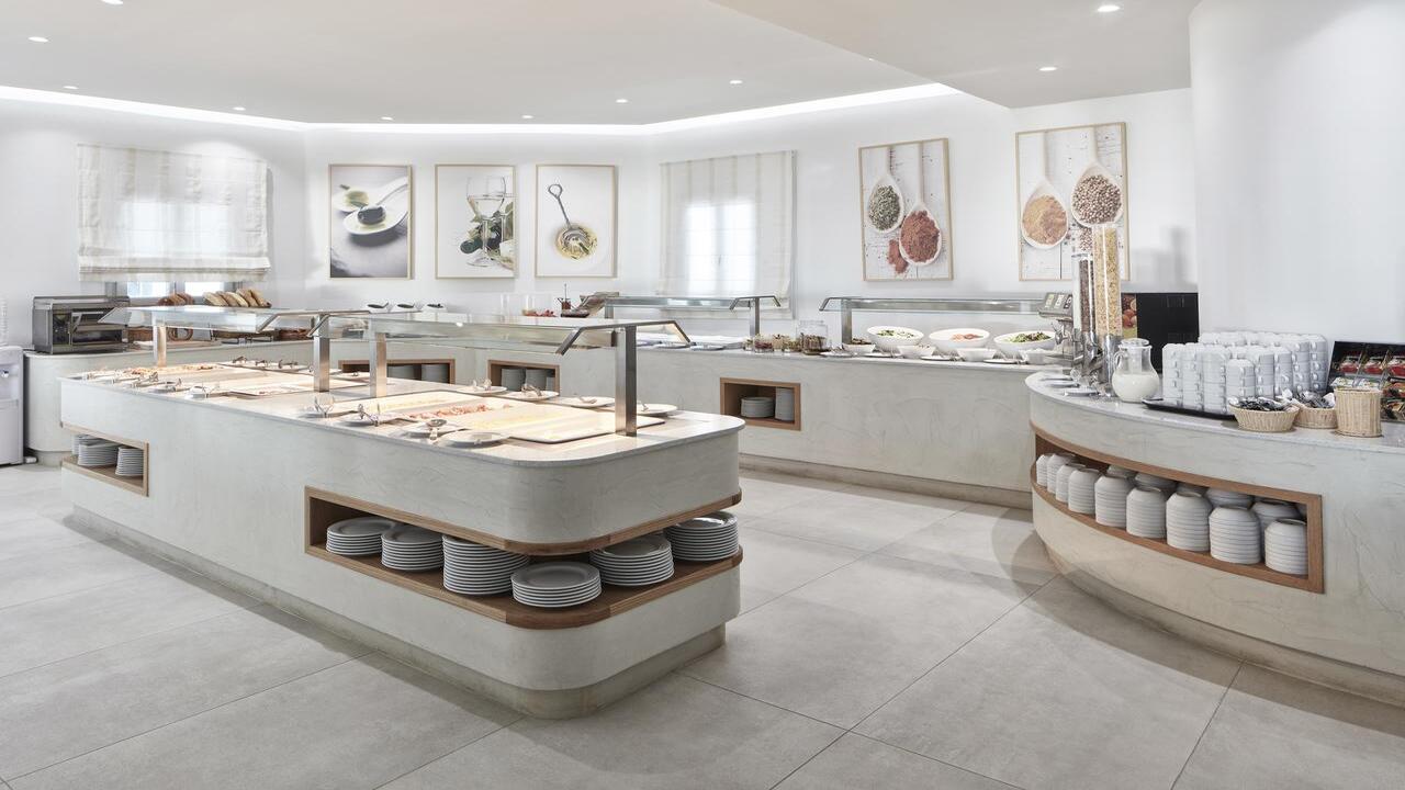 За закуска или вечеря елегантната обстановка създава спокойна атмосфера, съчетана с най-добрите и внимателно подбрани суровини. От средиземноморски рецепти до изкушаващи интернационални ястия и традиционни гръцки специалитети, комплексyt предлага голямо разнообразие от възможности за хранене точно на плажа.