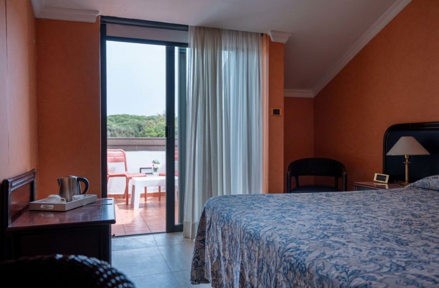 Хотелът разполага с общо 53 стаи, разположени в една основна 3-етажна сграда, от които Standard room (разположени на 3-ти етаж, изглед гора или море - 23 м2). Всички стаи са оборудвани с климатик, телевизор, телефон, баня с вана, сешоар, минибар (само вода), сейф, малък балкон със скосена част.