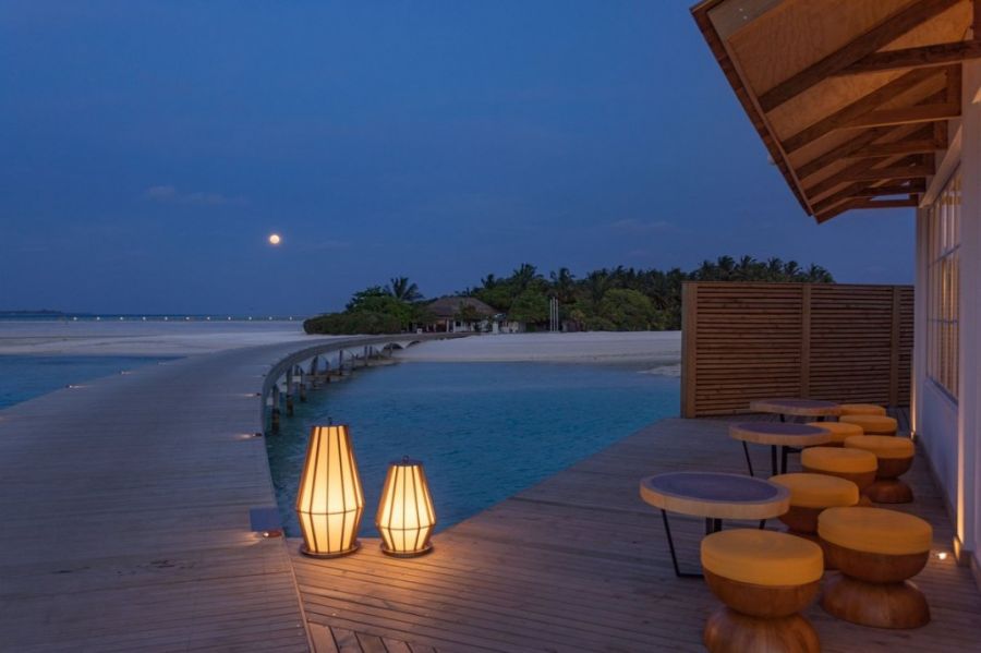 На територията: Комплексът разполага със СПА център от световна класа и бар, разположен на колове във водата. Насладете се на панорамния изглед към острова, докато хапвате ястия на шведска маса в ресторант Malaafaiy. Предлагащ богата селекция от вина, Nalha Falhul ще ви плени с уединена атмосфера и напитки след хранене.