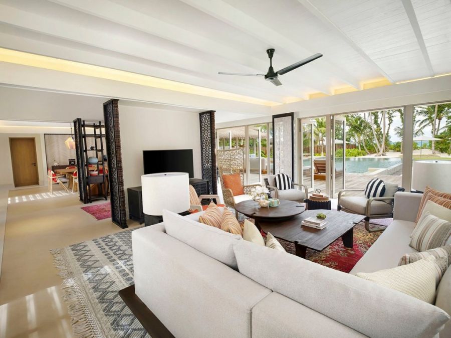 В стаите: Предлага възможност за настаняване във вили и резиденции на плажа, над водата и в лагуната. Стаята разполага със сешоар, Wi-Fi, халати и чехли, сейф, баня с вана или душ, тоалетна, телевизор, минибар, вентилатор, климатик, удобства за приготвяне на чай и кафе, тоалетни принадлежности. Стаята се почиства ежедневно, спалното бельо и кърпите се сменят ежедневно. 24-часово обслужване е на разположение срещу заплащане.