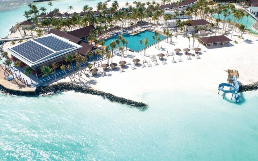 Трансфер с моторна лодка, продължителност 15 минути. Първокласен курортен хотел, който заема целия остров и предлага настаняване както на плажа, така и във водни вили. Всички стаи са стилно декорирани, добре оборудвани, а гостите могат да се насладят и на вкусна храна и бели плажове.