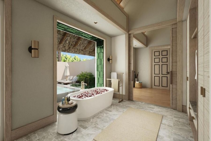 В стаите: Стаята разполага с баня, климатик, частен басейн, електрическа кана, минибар. Осигурени са също услуги за почистване, смяна на спално бельо и кърпи.