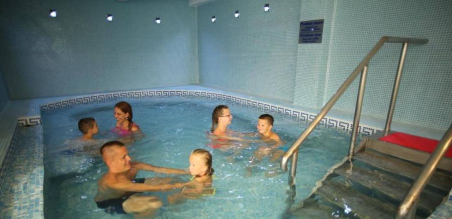 СПА център: Уелнес центърът на хотела предлага вътрешен и външен басейн, сауна, парна баня, джакузи, тепидариум - топло помещение с подово отопление и подгреваеми седалки, солна стая.
