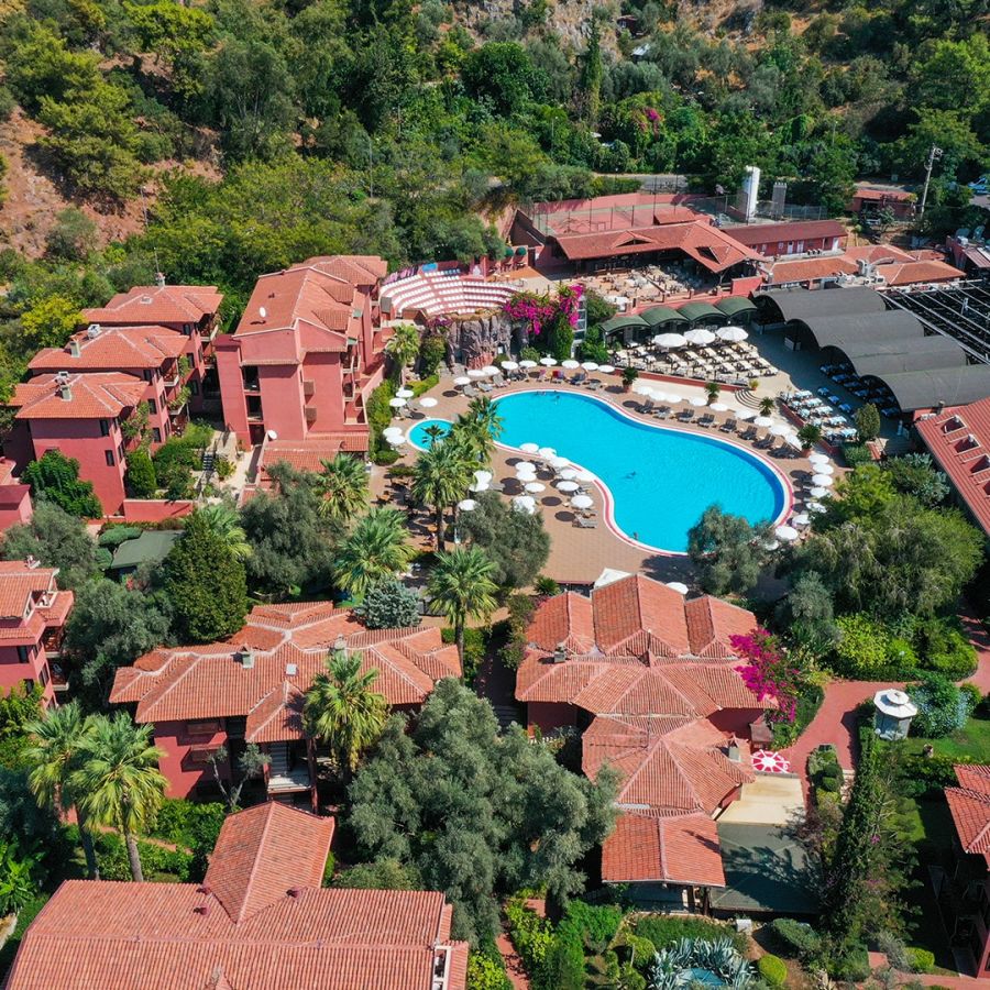 Хотелът се намира на 60 км. от летището в гр. Даламан, на 12 км. от Фетие, на 100 м от центъра на Олудениз, на 150 м от брега на морето. Построен през 1996 г. на площ 20 000 м2, частично реновиран през 2014 г.