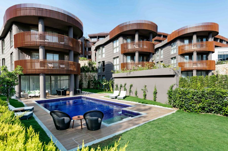 Вили: Exclusive Villa (1-ви етаж: всекидневна, спалня и баня; 2-ри етаж: две спални и две бани, 1 тераса и собствен басейн; всички спални имат балкон, по-богато разнообразие в мини бара, иконом), Superior Villa (1-етаж: кухня, всекидневна, сауна и баня; 2-ри етаж: 4 спални, тераси и собствен басейн, джакузи, маса за вечеря, богато разнообразие в мини бара, иконом – 300 м²), Presidental Villa (3-етажна вила, разположена в градините на хотела, кухня, всекидневна, хамам, сауна на първия етаж, 6 спални, турска баня, собствен басейн, сауна, асансьор, иконом – 530 м²).