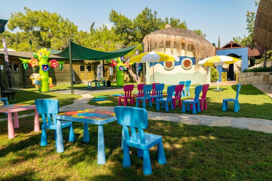 Основен ресторант, 3 а-ла-карт ресторанта 4 бара, 4 открити басейна, 1 детски басейн, водни пързалки за деца и възрастни, детска площадка, мини клуб (4-12г.).